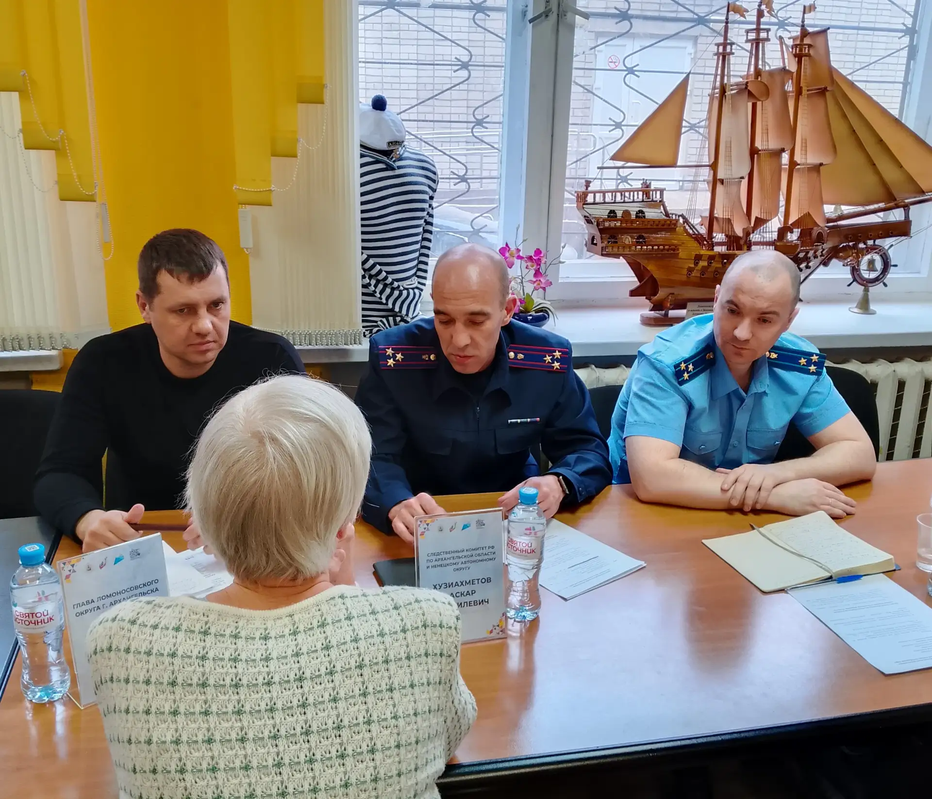 Руководитель следственного отдела по Ломоносовскому округу города Архангельска следственного управления Следственного комитета Российской Федерации по Архангельской области и Ненецкому автономному округу Аскар Хузиахметов, прокурор города Архангельска Антон Филимонов, глава администрации Ломоносовского территориального округа Алексей Ганущенко провели выездной совместный прием граждан в помещении Архангельского областного центра социальной защиты населения.