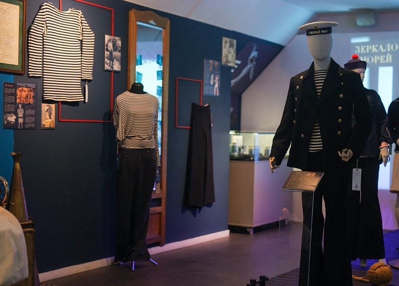 В Северном морском музее открылась выставка «Зеркало морей. Морской стиль от палубы до подиума». Она рассказывает о том, как одежда моряков, от бушлата до кителя, проникла в повседневный гардероб и даже на модные подиумы.
