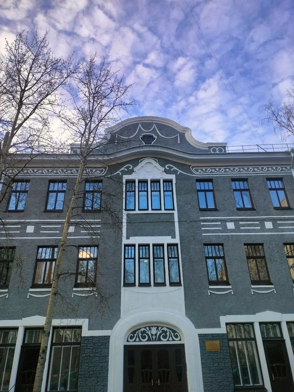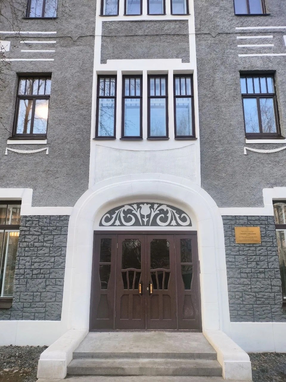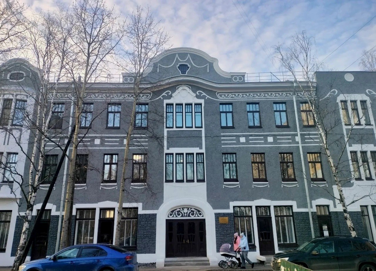 Трехэтажное кирпичное здание в стиле модерн имеет оригинальный декор. Многие десятилетия здесь размещались учебные учреждения и социальные службы. Реставрация стала возможна благодаря инвестору: в 2021 году памятник архитектуры выкупил Олег Веревкин.