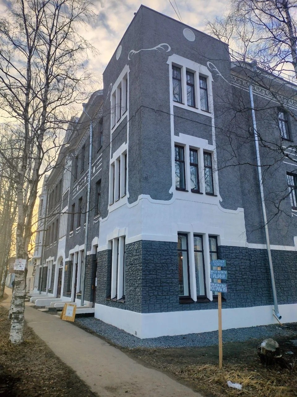 Памятник архитектуры 1914 года постройки обрел заинтересованного собственника и вновь стал украшением Соломбалы. В течение года здесь велись реставрационные работы. Они еще продолжаются, а в здании уже кипит жизнь – здесь открыто творческое пространство «Тишина» и магазин винтажных вещей.