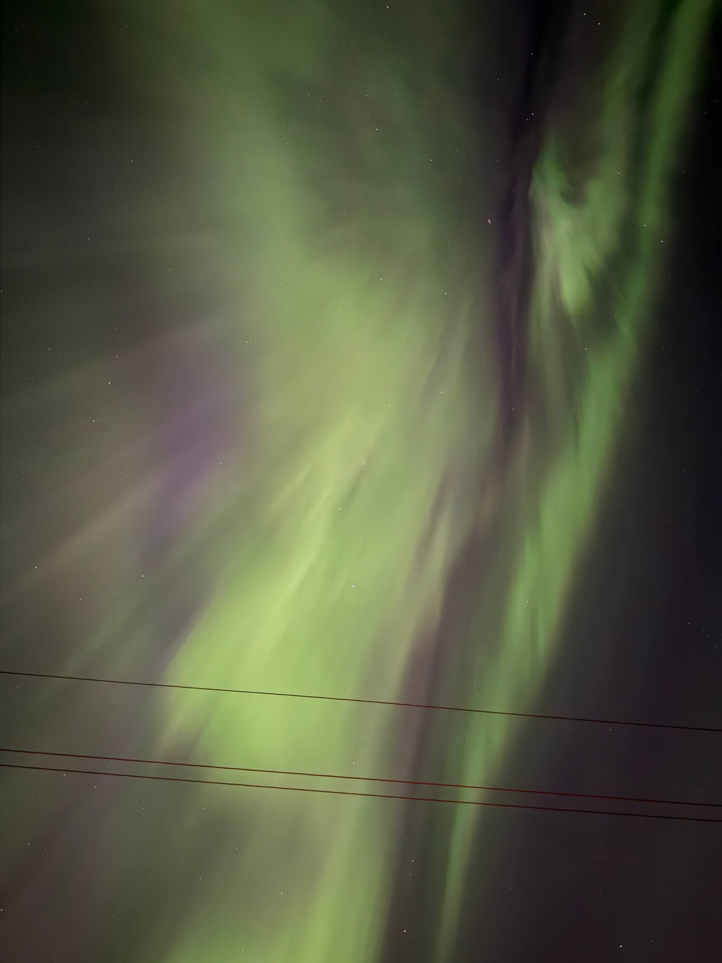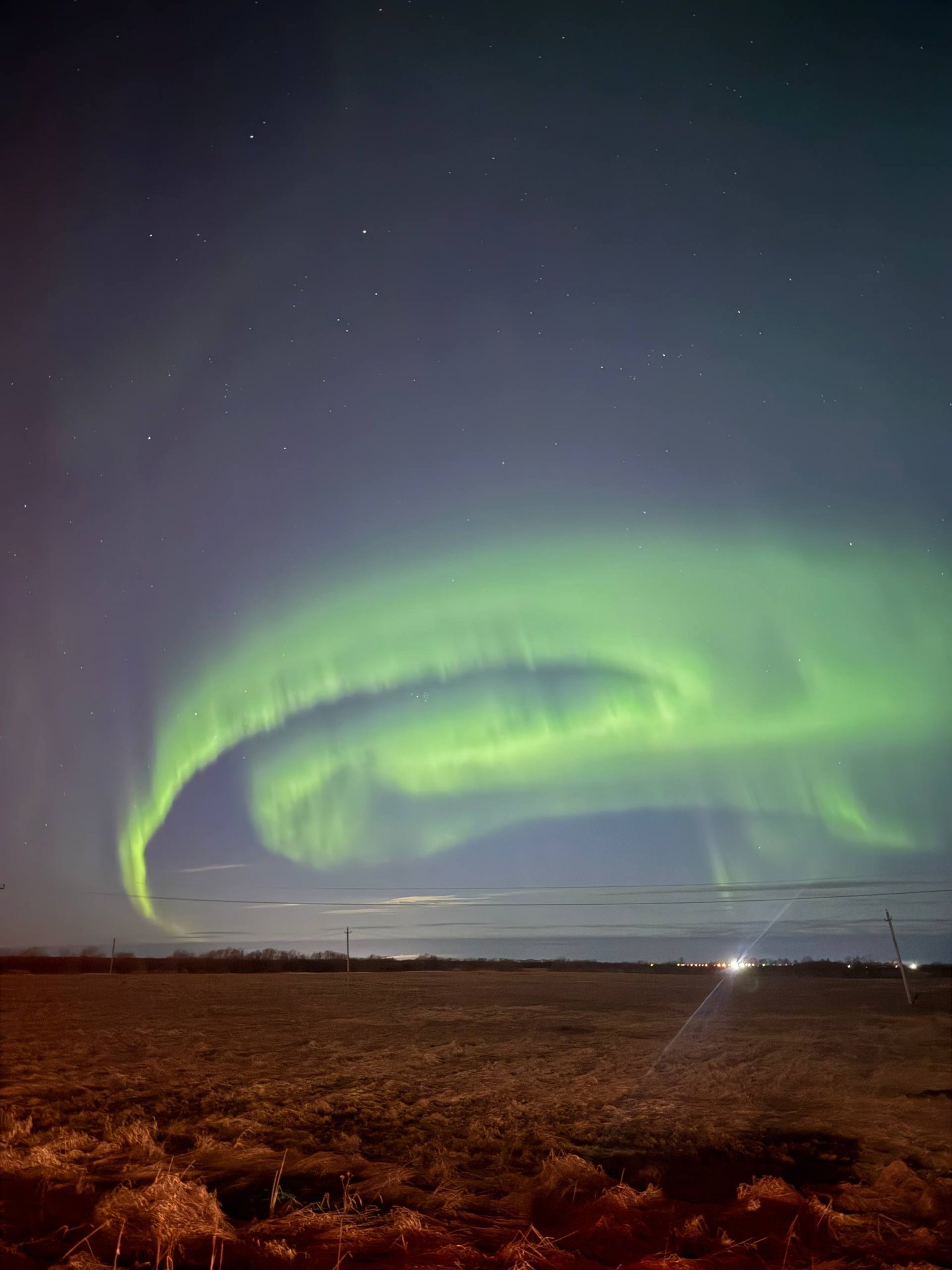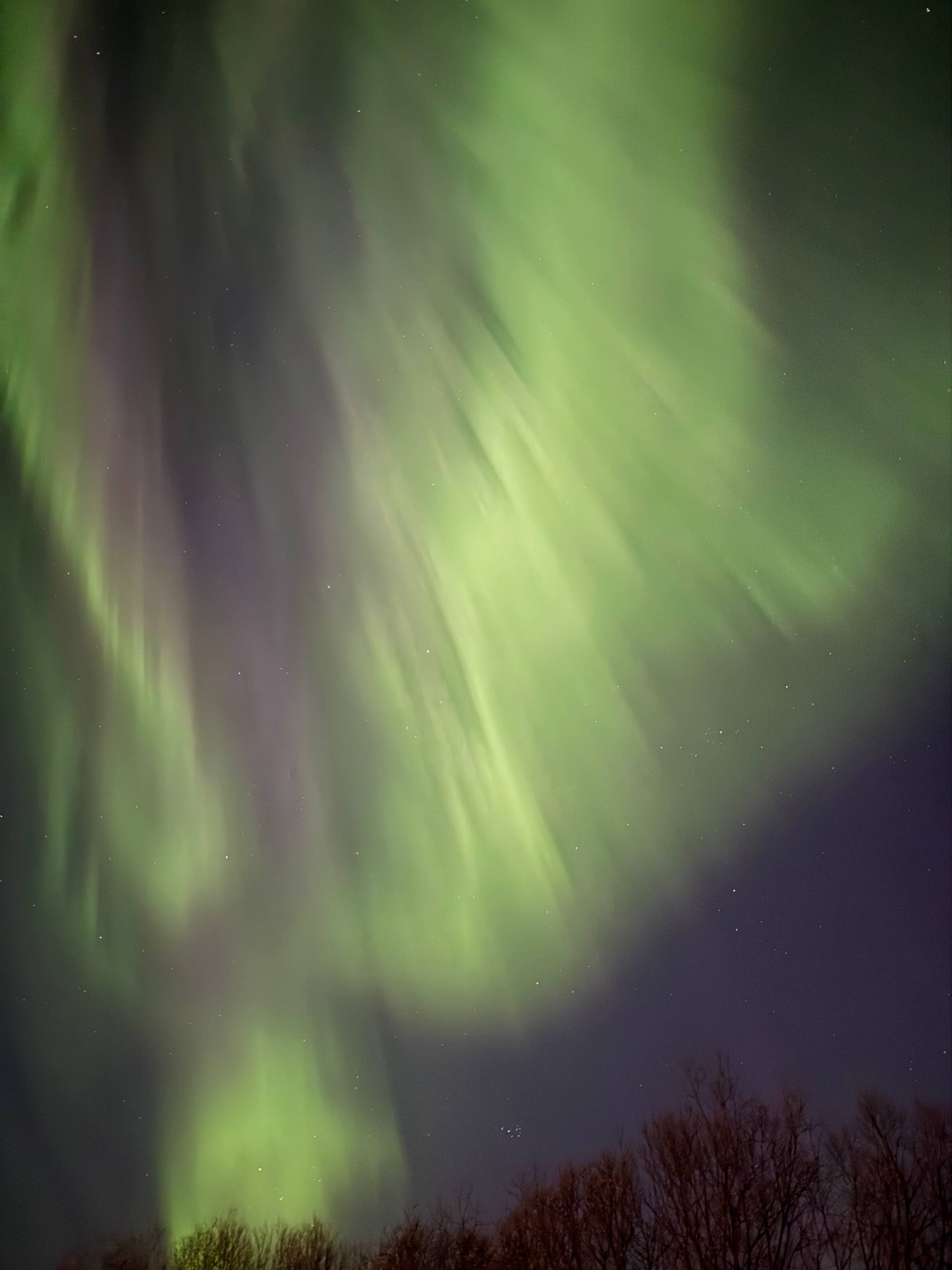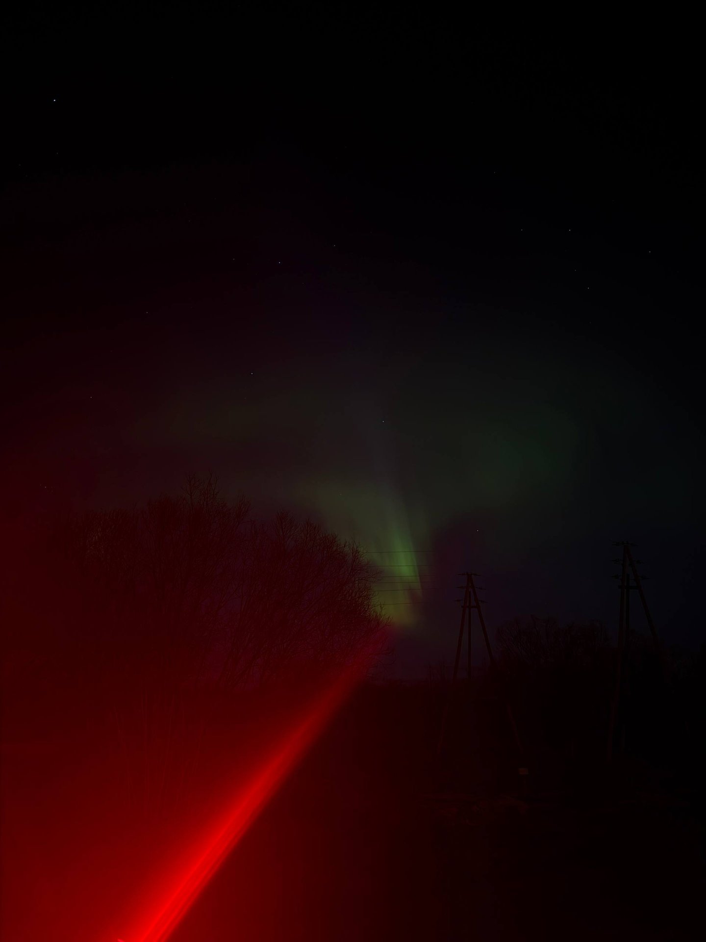 2 апреля вечером небо заиграло зелёными и фиолетовыми оттенками. Явление наблюдали не только у нас, но и в Мурманской и Ленинградской областях.
