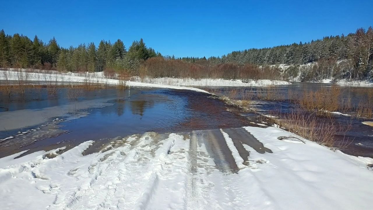 На км 65 автодороги Пинега - Чакола - Пиринемь произошл перелив воды через дорогу у моста через р. Юбру. Проезда нет