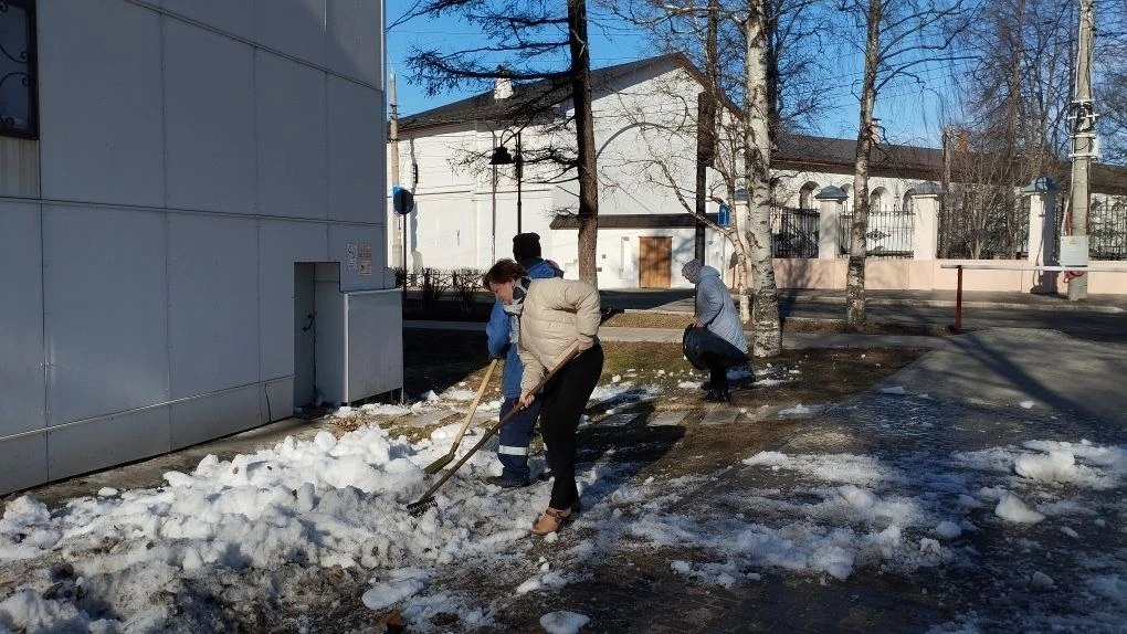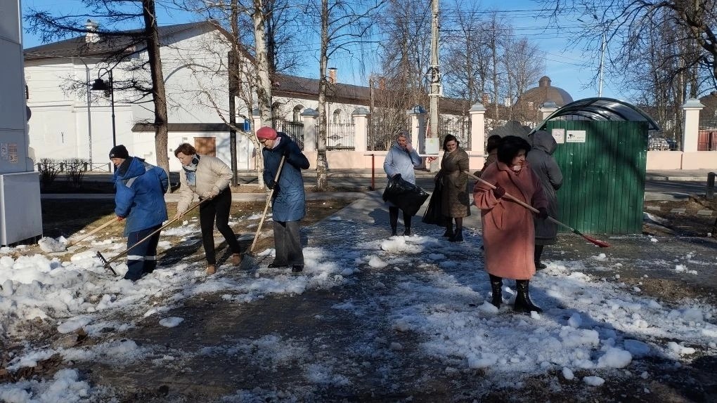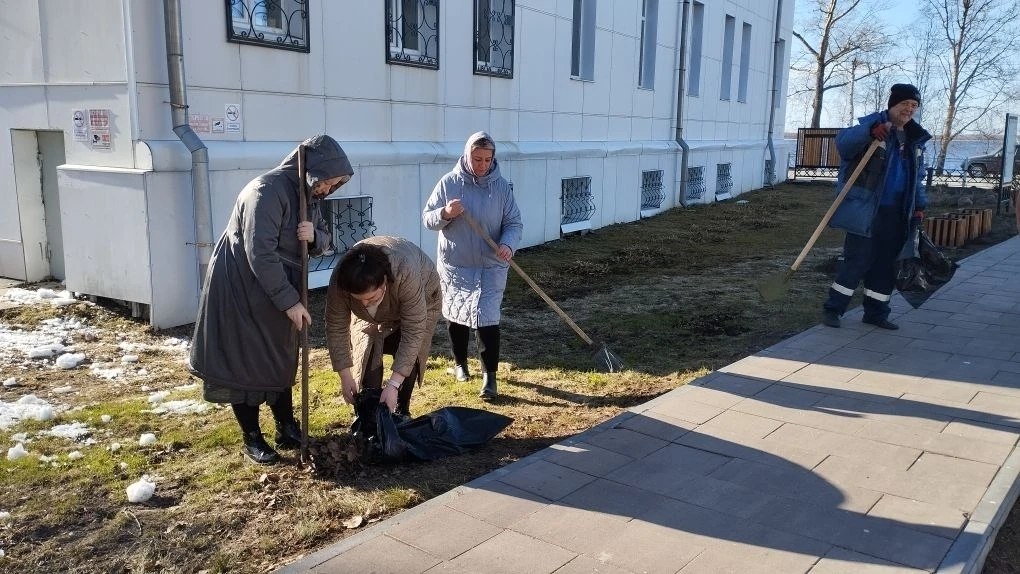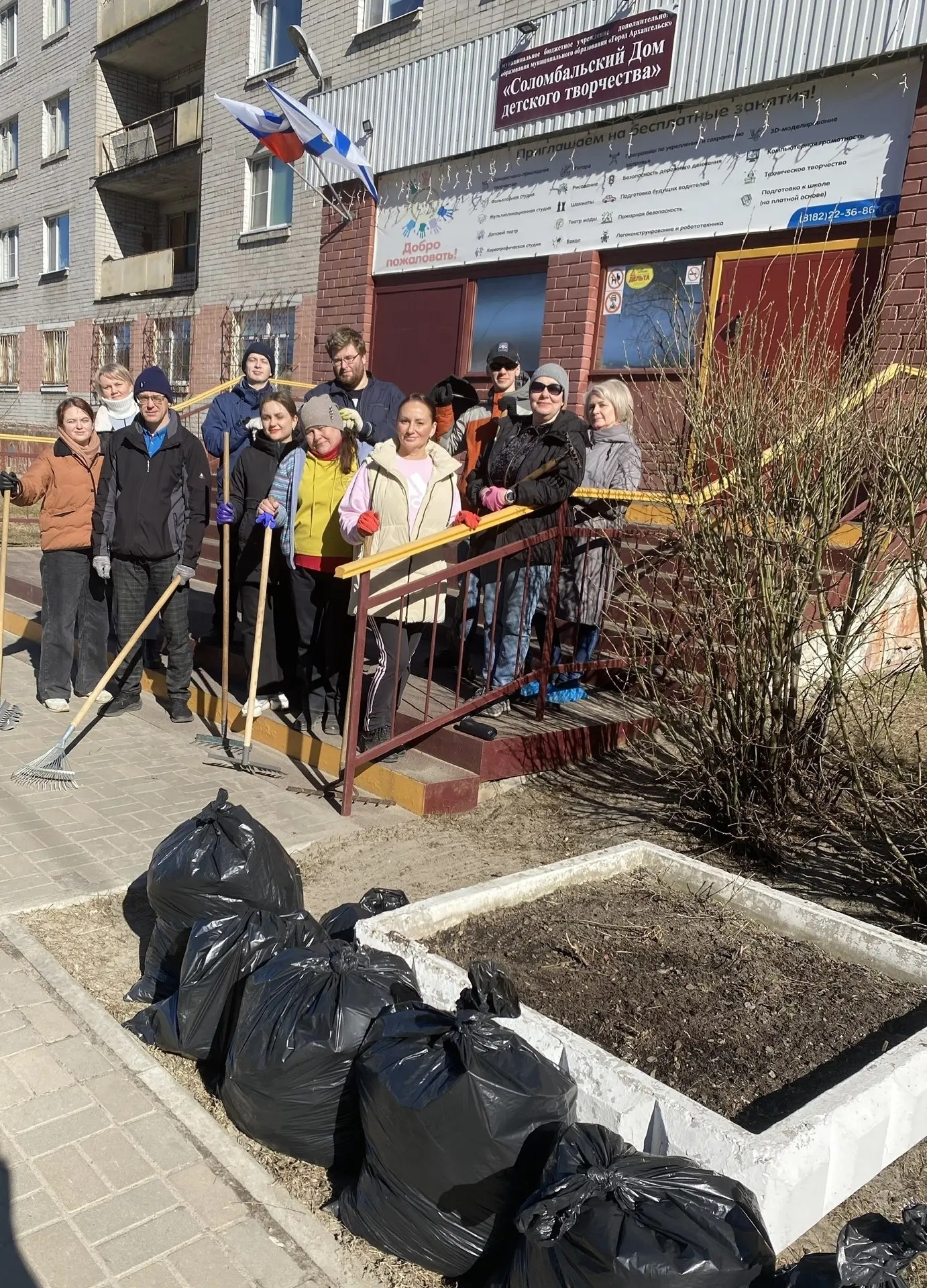 На уборку территорий вышли сотрудники центра "Леда", Соломбальского дома детского творчества, центра "Контакт" и Ломоносовского Дома детского творчества