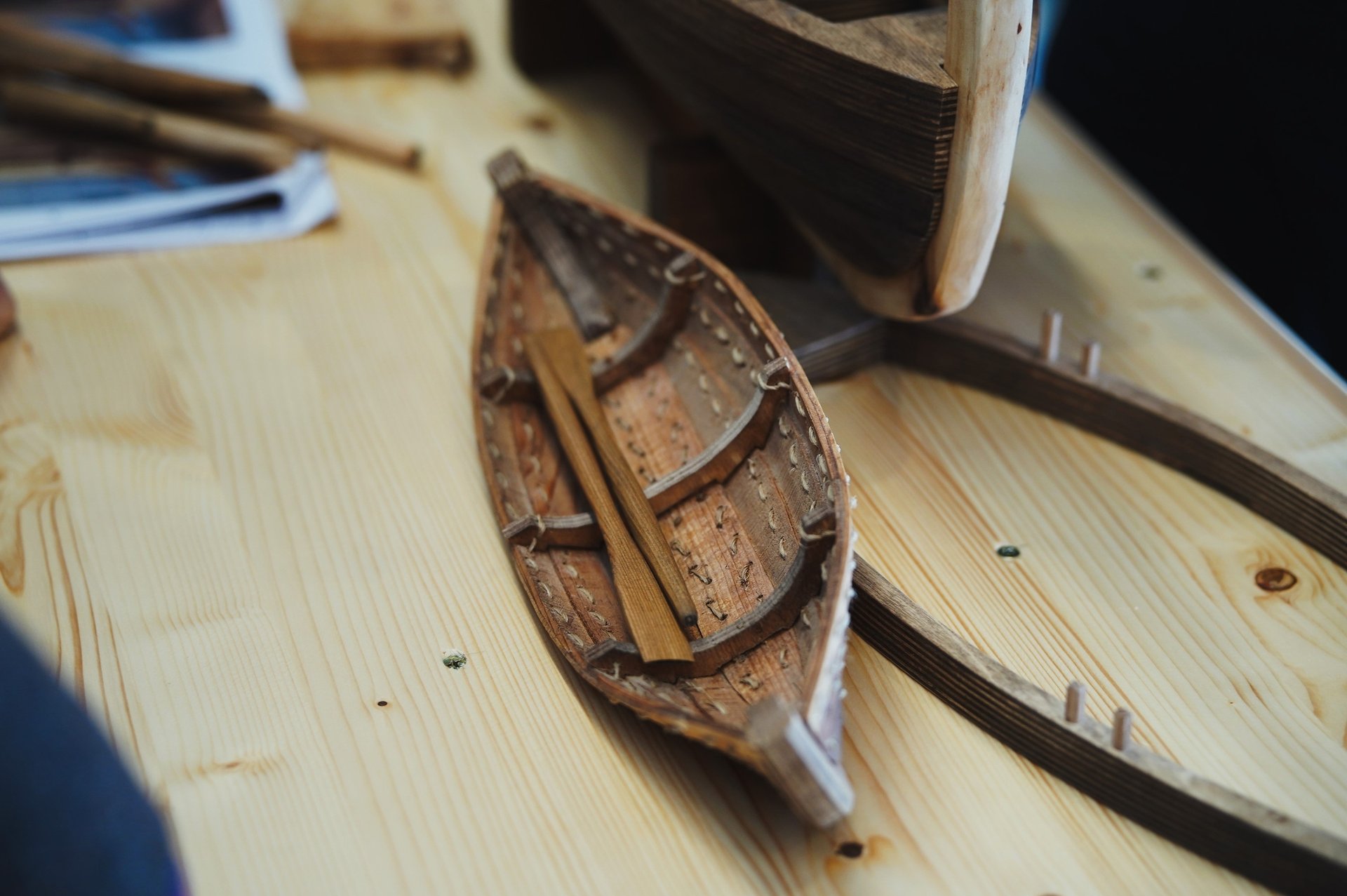 В постоянной экспозиции рядом с картой архипелага Новая Земля появились две деревянные модели-сборки парусных судов — коч и фрегат. Их изготовил плотник, архитектор и реставратор Александр Антонов.