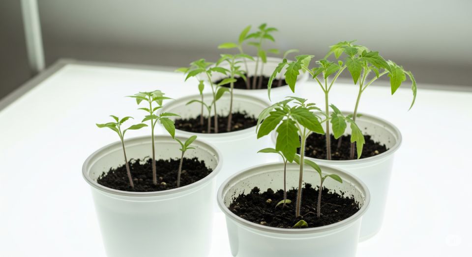 Для успешного роста томатов необходимо понизить температуру сразу после появления всходов и использовать круглосуточную подсветку полной спектра в течение 3-4 дней. Днем оптимальна температура 15-16 °C, а ночью — 8-12 °C, однако большие перепады нежелательны.