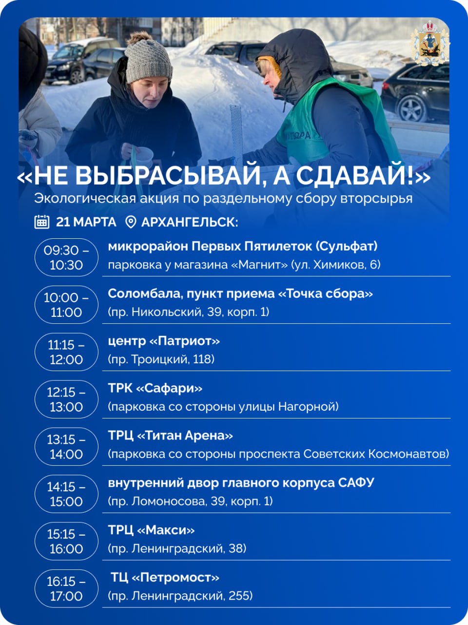 Мероприятие состоится 21 марта одновременно в Архангельске и Северодвинске, где откроются 18 точек сбора.