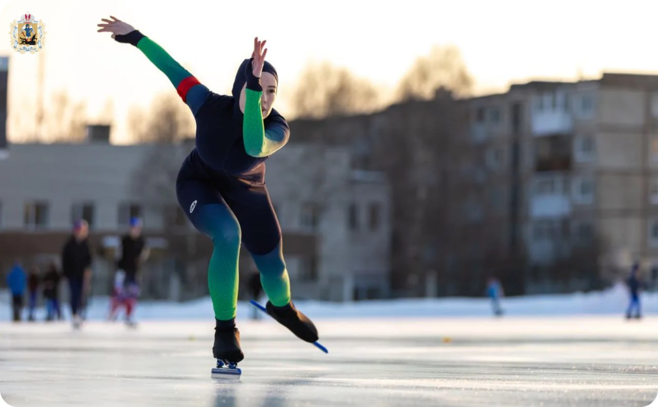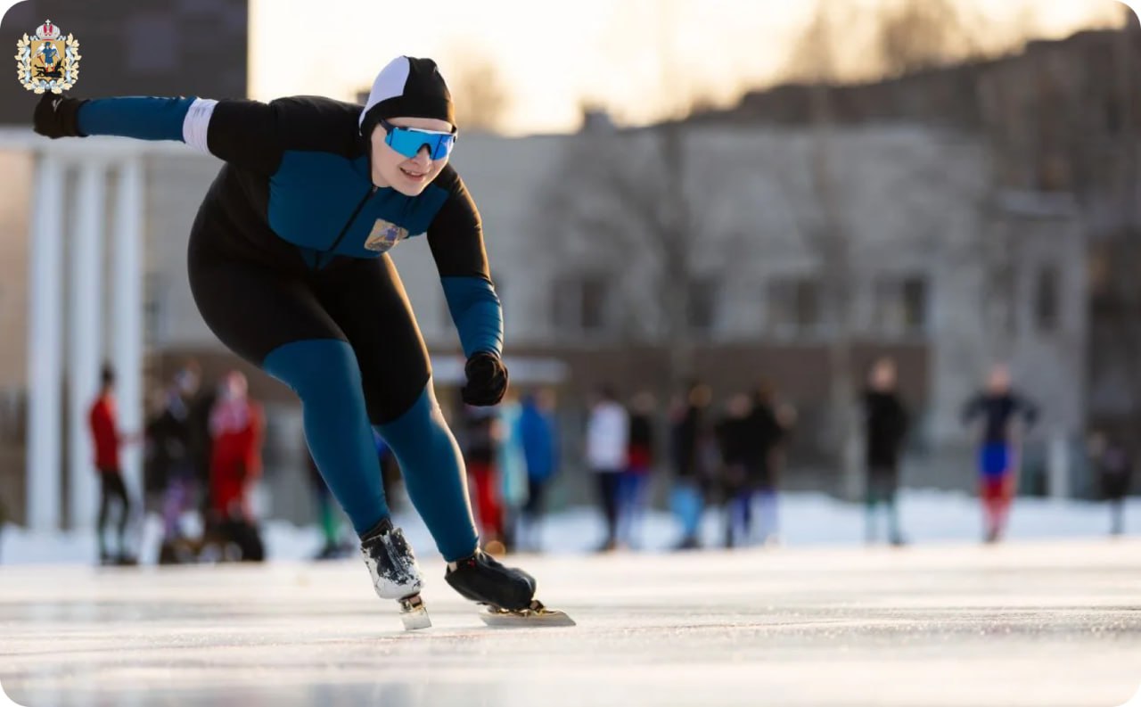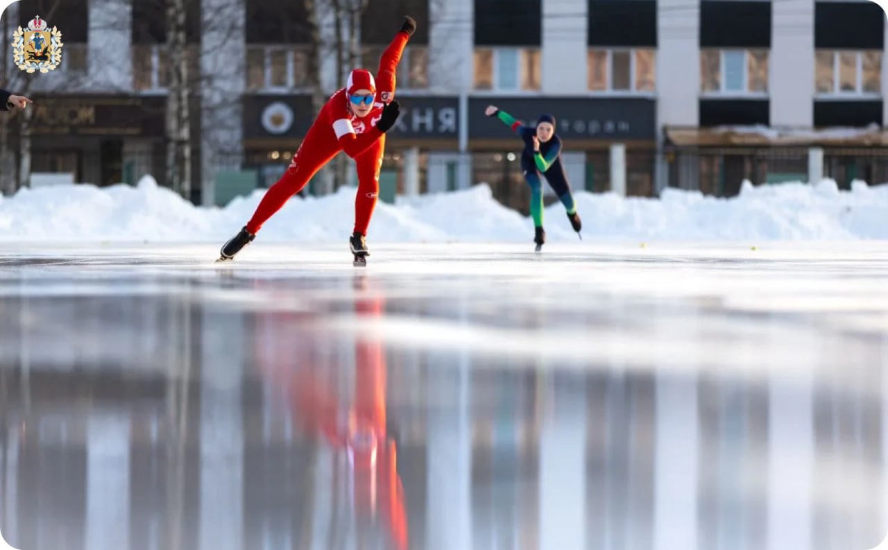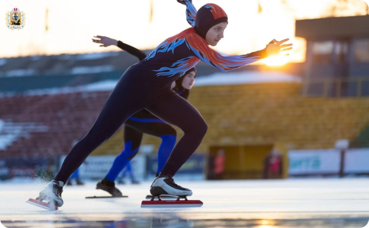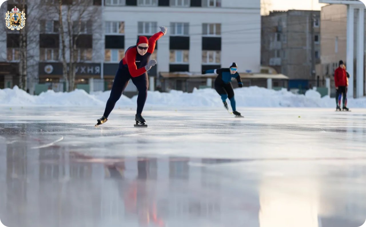 В Архангельске на льду стадиона «Труд» состоялись чемпионат и первенство области по конькобежному спорту.