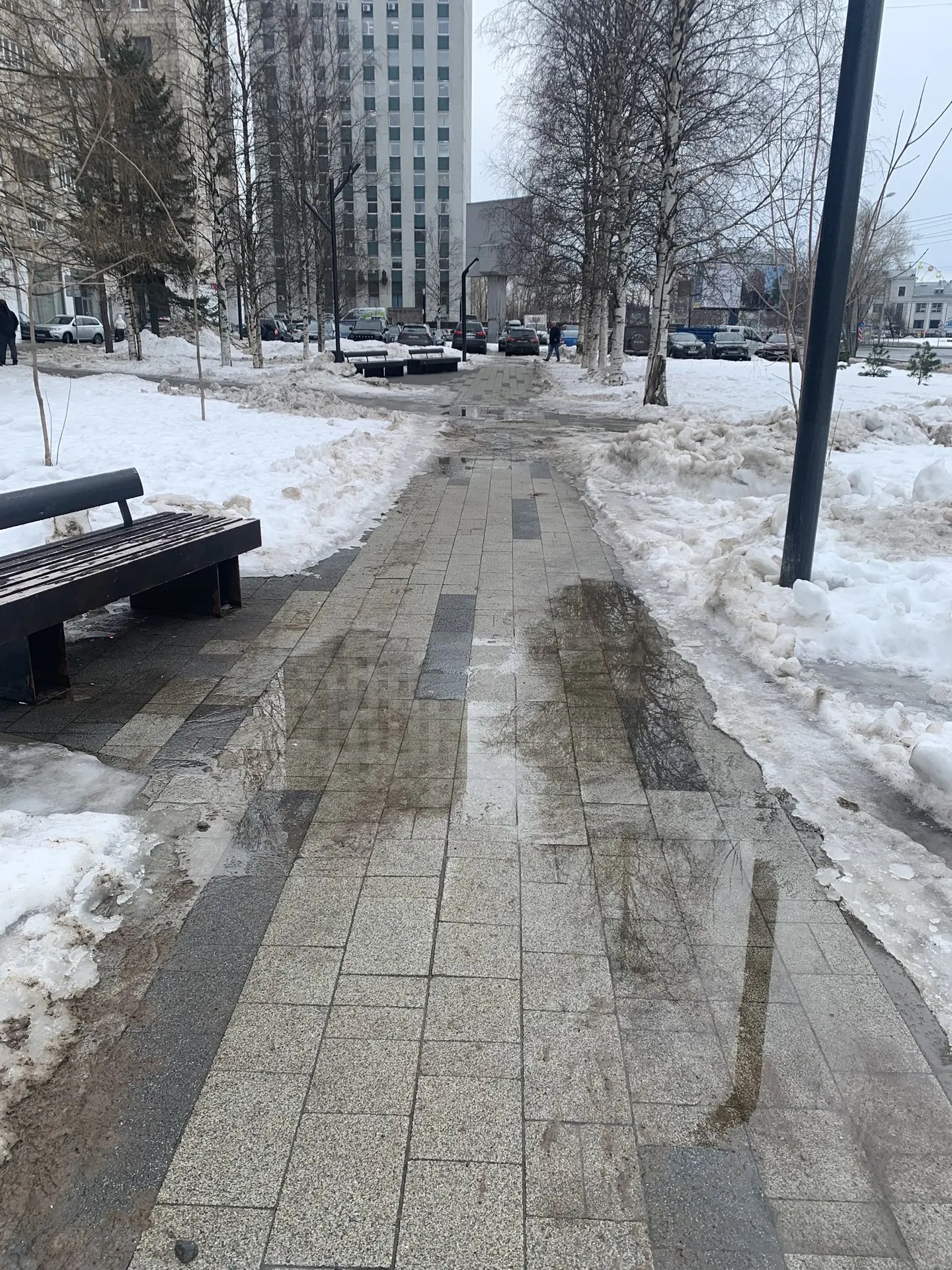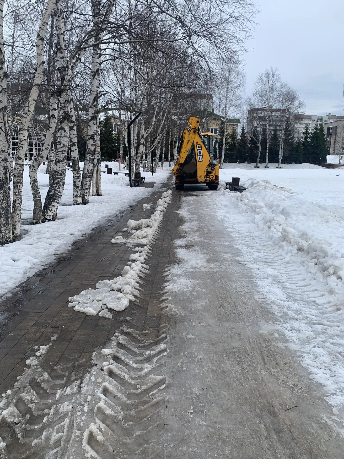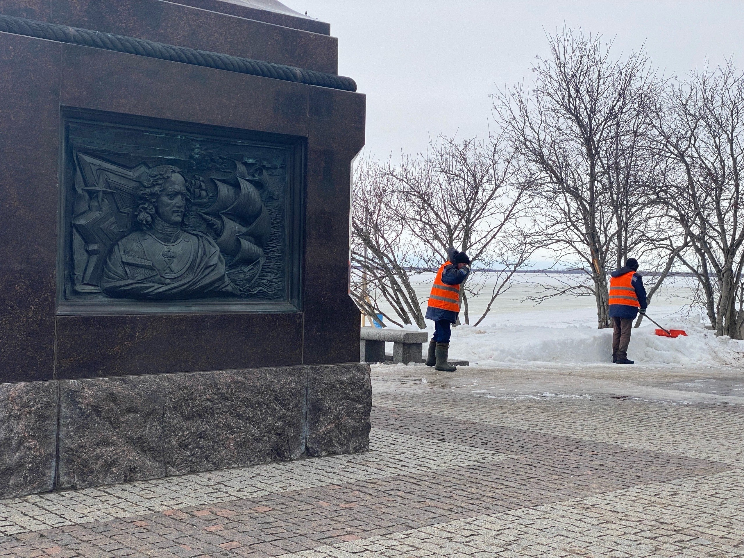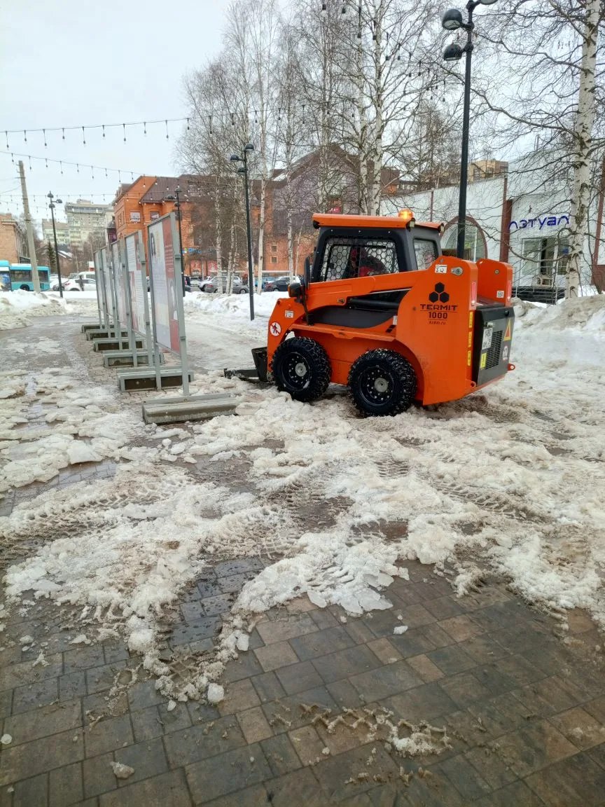 В Архангельске продолжается весенняя очистка прогулочных зон от снежного наката