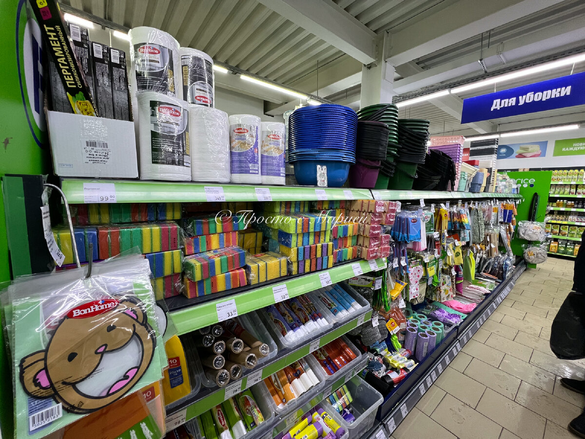 Спустя пару недель после первого визита губки всё же появились на полках, хотя выбор был весьма ограничен. При этом их цена немного превышала среднюю для подобных товаров. Автор обзора успела приобрести всего две губки, но, вернувшись позже, не удержалась и купила ещё три, так как осталась довольна качеством.