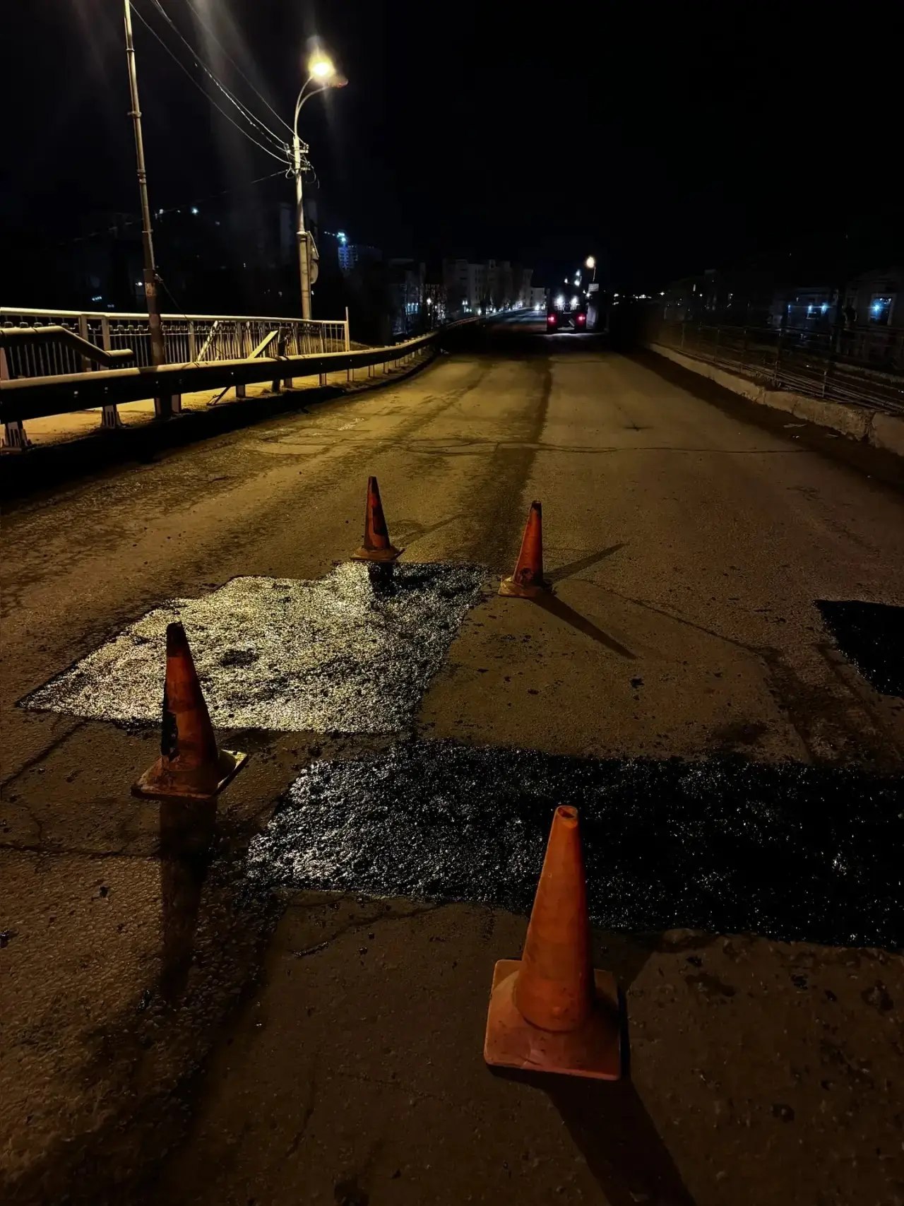В ночь на 25 марта силами подрядчика «Лендорстрой» выполнен ямочный ремонт на Северодвинском мосту. Для устранения дефектов дорожного полотна использовался литой асфальт. Работы выполнялись без полного перекрытия движения.