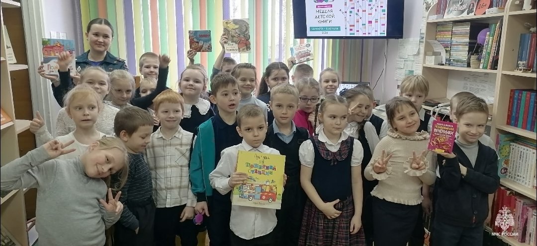 В Исакогорской детской библиотеке №13 в рамках Недели детской книги состоялась интересная встреча: сотрудник отдела надзорной деятельности и профилактической работы МЧС предстала перед юными читателями — учениками 1-го класса школы №77 — в образе чтеца и рассказчика