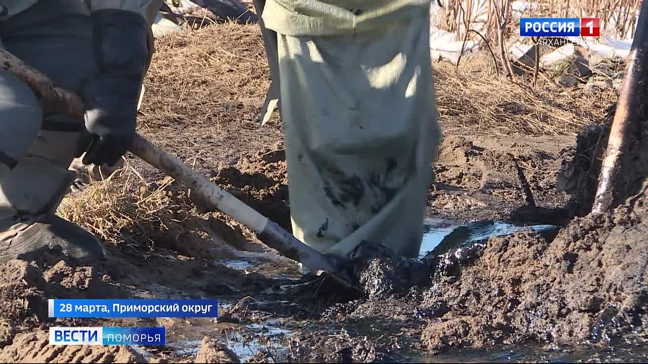 Работы по ликвидации разлива нефтепродукта около деревни Повракульской Приморского округа завершены