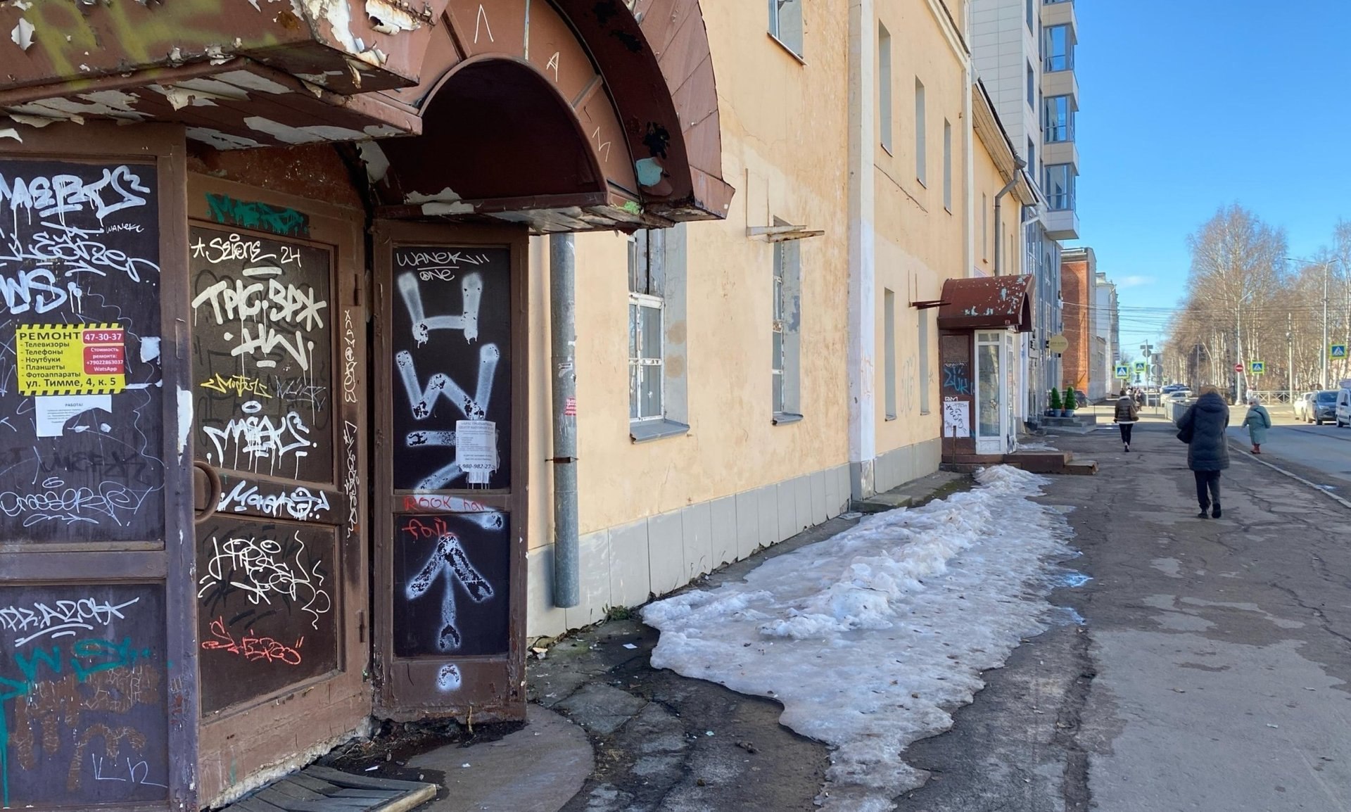 Пока в здании продолжает работать парикмахерский салон: ради него вход пока открыт.