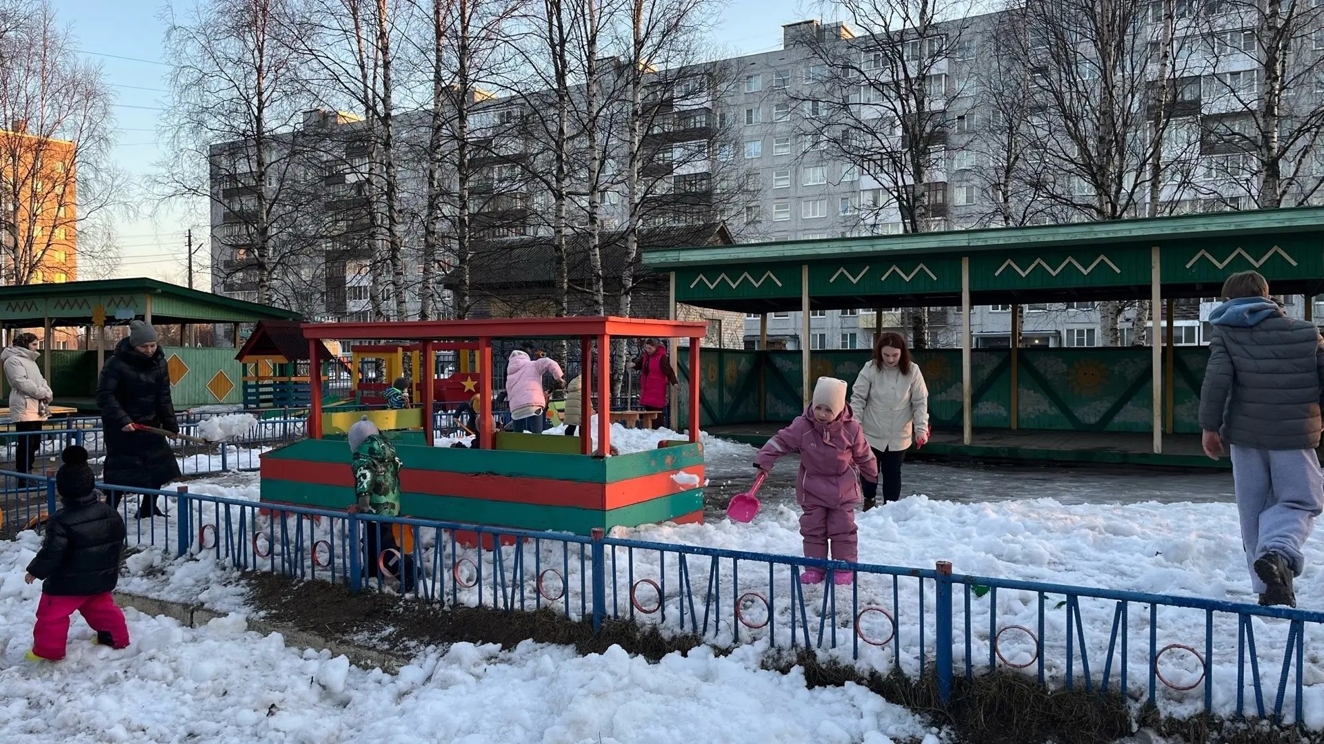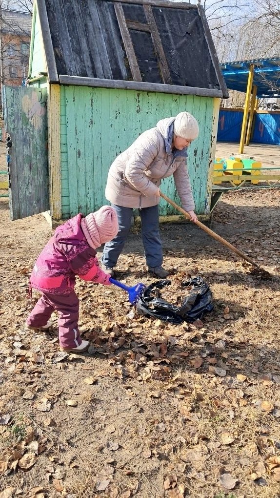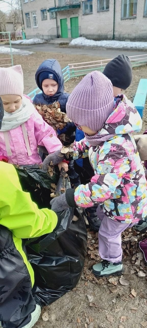 Детские сады города продолжают выходить на уборку территории.