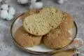 Хлеб готовится быстро и просто. Сначала творог нужно размять до однородной массы в глубокой миске. Затем следует разбить в творог два яйца и тщательно перемешать все ингредиенты. Далее добавляется овсяная мука, с солью и разрыхлителем. Тщательно перемешив, можно формировать буханки влажными руками.