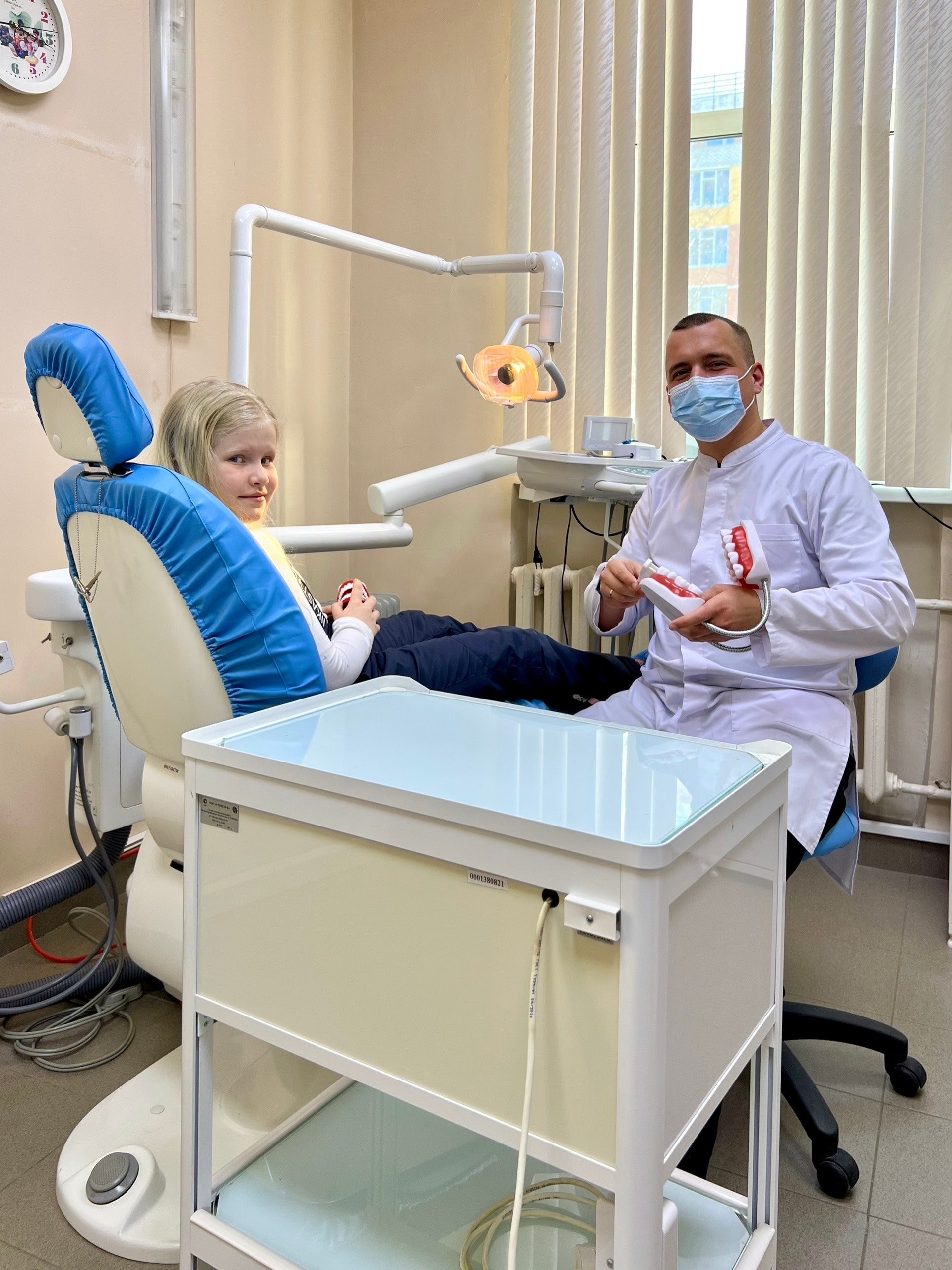 Врач здесь не только проводит осмотр, но и рассказывает, как правильно ухаживать за ними с ранних лет. Для наглядности - макеты, картинки, игрушки. Разве можно бояться в таком красивом и интересном кабинете