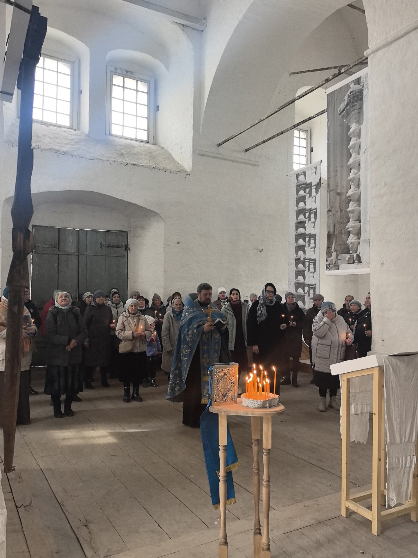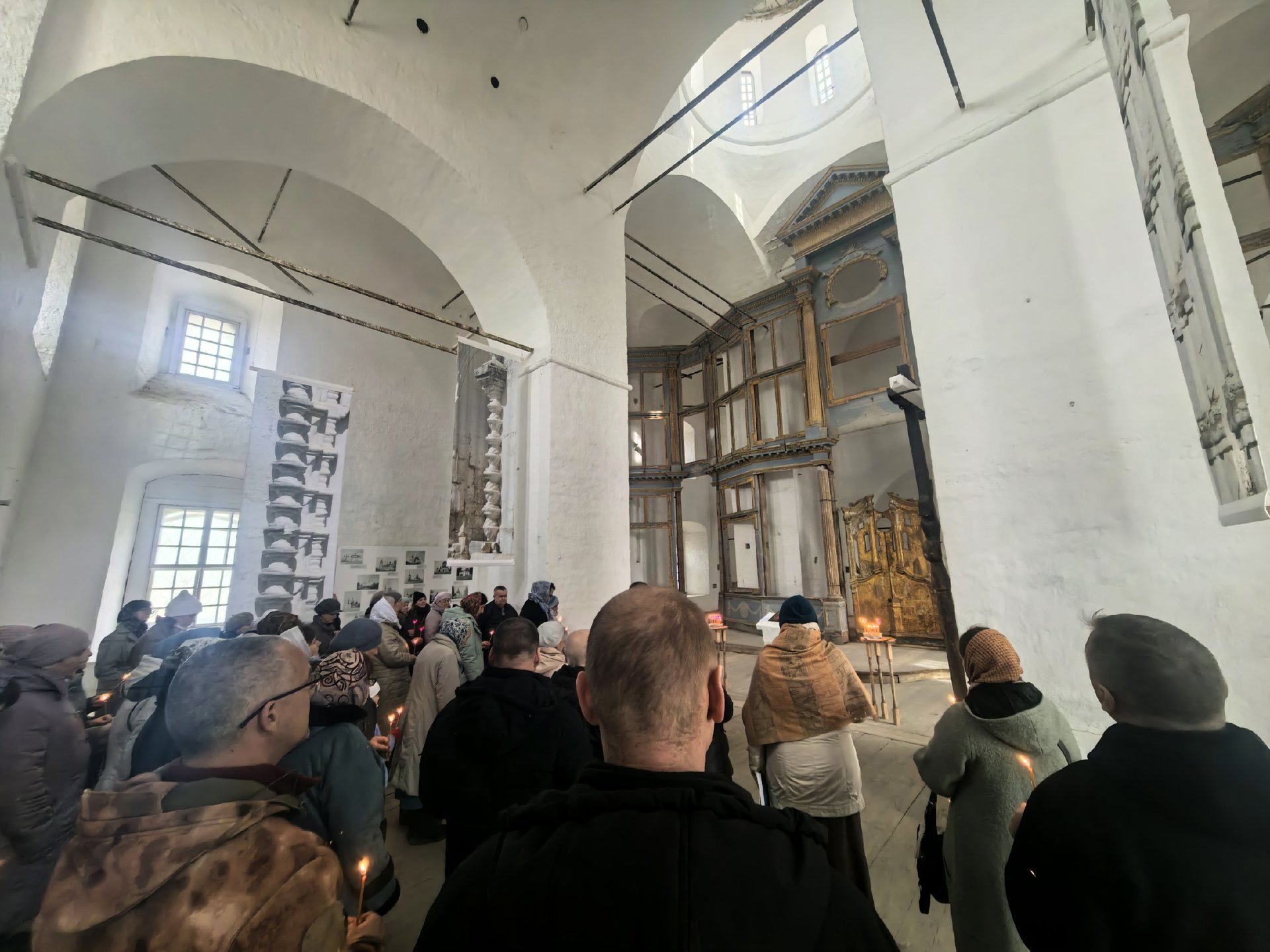 Радость первого молебна пришли разделить многие жители Каргополя. В величественном пространстве верхней церкви, благодаря удивительной акустике, особенно торжественно звучали возгласы священника, которые чередовались с молитвенным песнопениями певчих.
