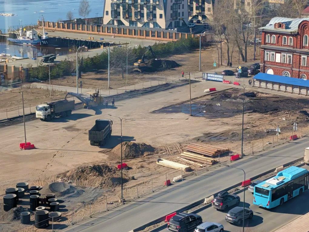 В Архангельске продолжаются масштабные работы по благоустройству площади Профсоюзов. На участке будущей пешеходной зоны от здания Сурского подворья до кафедрального собора подрядчик приступил к фрезерованию территории. Эта процедура необходима для выравнивания основания. Параллельно ведется устройство инженерных сетей.