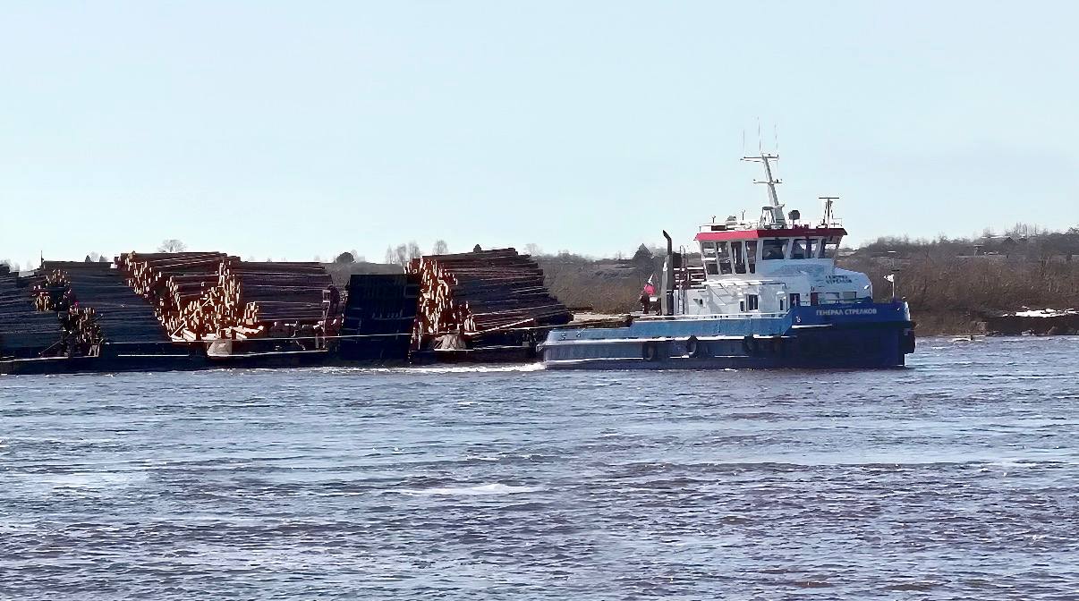 Первые транзитные суда с караванами барж двинулись по реке Северная Двина до Архангельска.