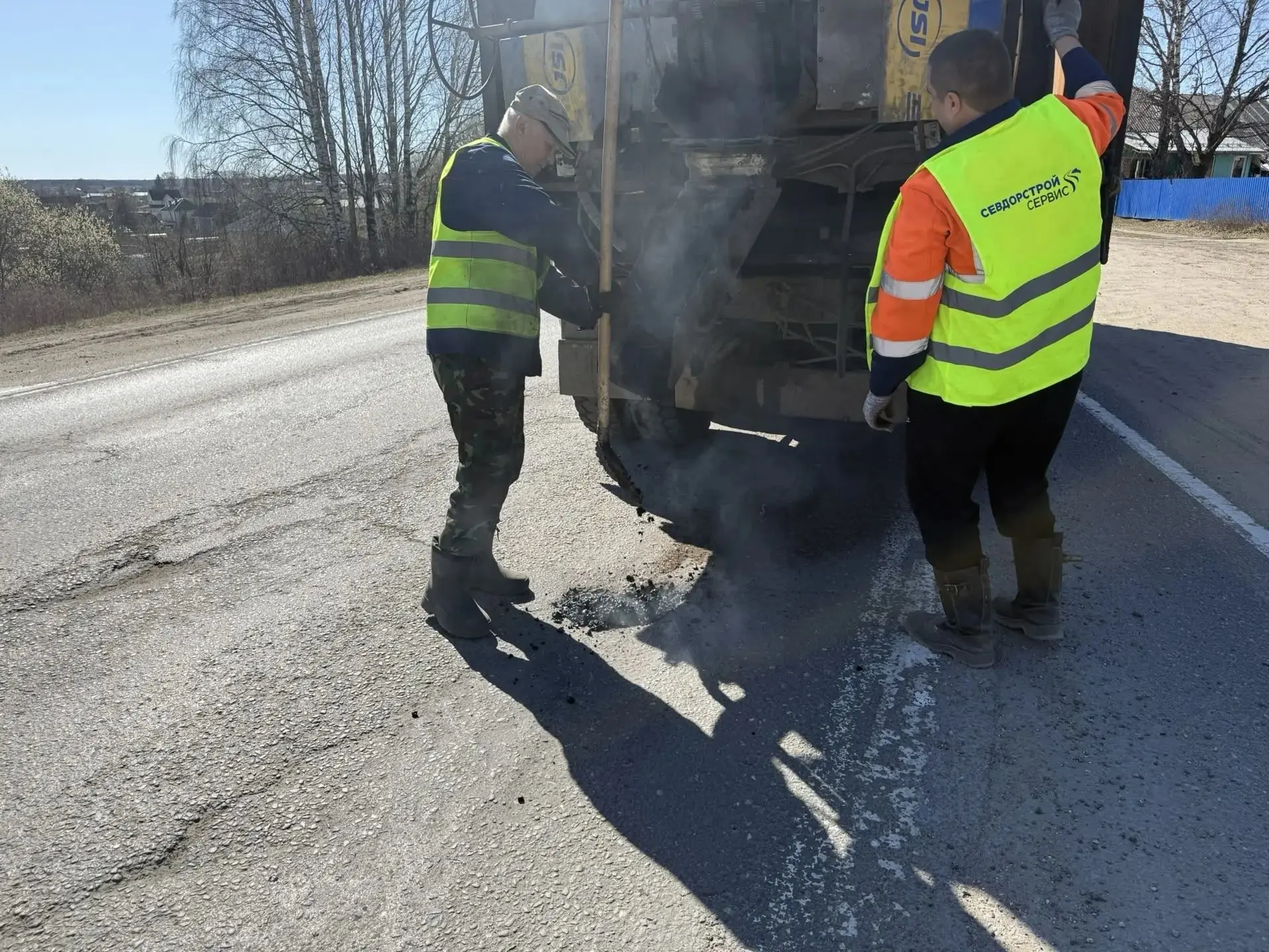 На автодороге Вельск - Филяевская производится ямочный ремонт методом литого асфальтобетона.