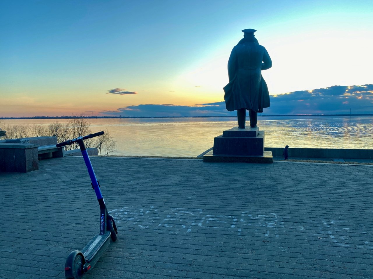 Сегодня в Архангельске — по-настоящему тёплый весенний вечер. И первые электросамокаты уже выставили. Город оживает, воздух пахнет весной.