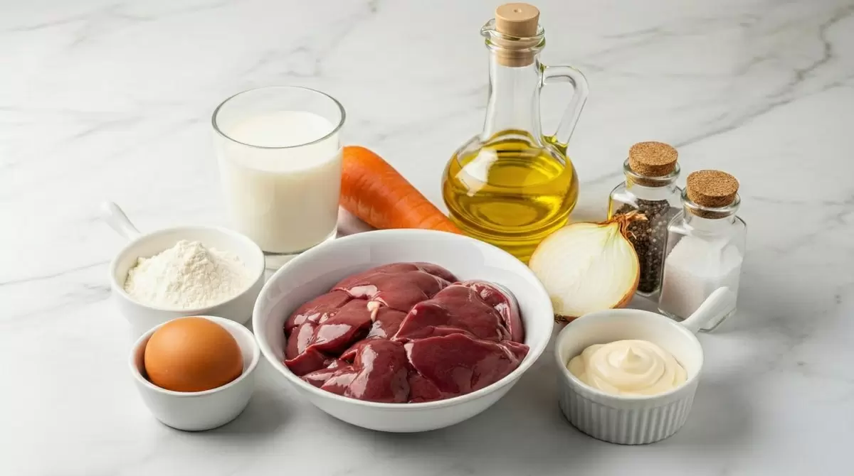 Промыть печень, удалить пленки и поместить в блендер. Добавить яйца и молоко, взбить до пышной консистенции. Всыпать муку, манку, соль и перец. Рекомендуется дать тесту настояться 20 минут — это делает блинчики более эластичными.