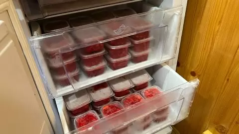 Среди проделанных работ — несколько вариантов заморозки: от рубленой клубники до целых ягод, готовящихся к зимнему хранению. В результате таких усилий футбольное поле ягод превратилось в 57 баночек объемом по 250 мл, что позволяет Любителям использовать нужное количество клубники в любой момент.