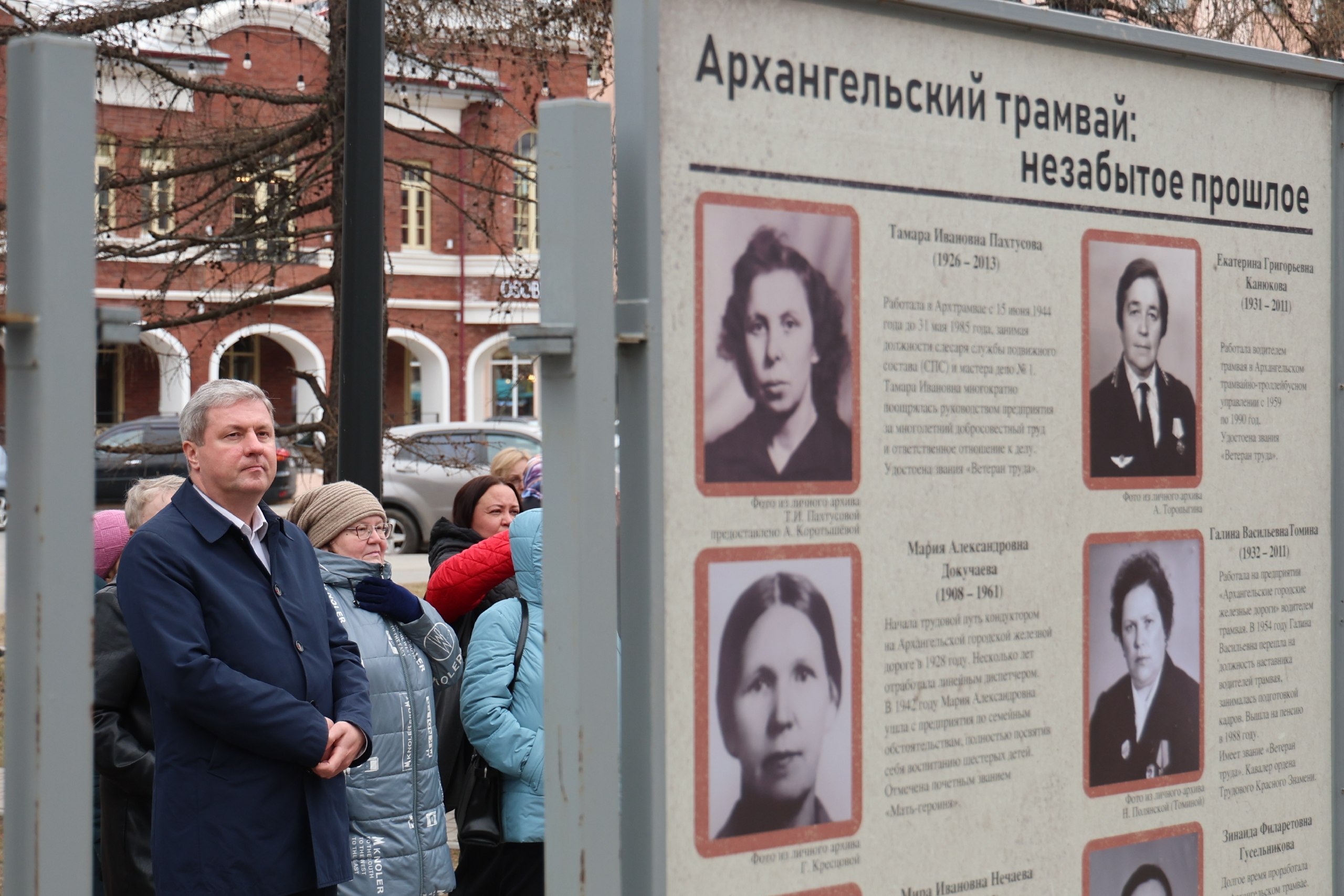 На открытии выставки побывал и глава Архангельска Дмитрий Морев. Архангелогородцы поинтересовались у него судьбой здания бывшего трамвайного депо на Ленинградском проспекте.
