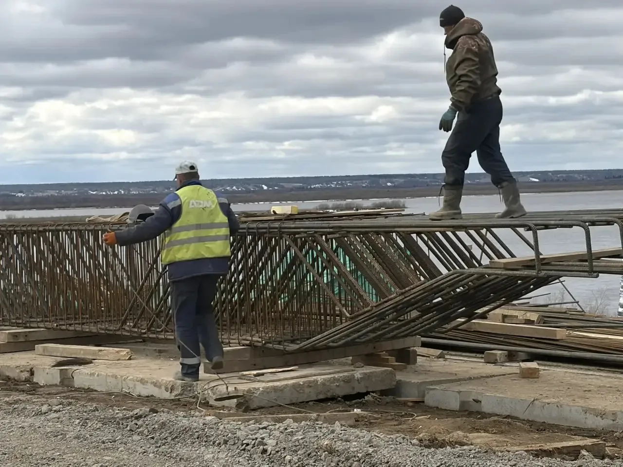 Все работы ведутся строго по графику. Уже в начале мая подрядчик приступит к монтажу пролетного строения, которое в дальнейшем соединит берега реки.