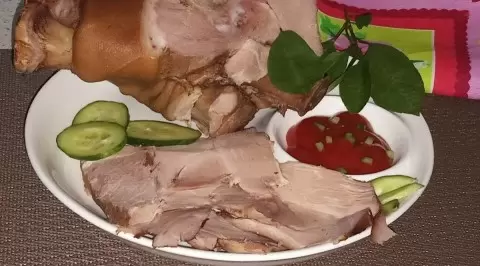 Такое угощение не только порадует глаз, но и изобилует ароматами: нежные вишневые листья и специи добавляют особую изюминку. Рулька вкусна как в горячем, так и в холодном виде. Приятного appetita!
