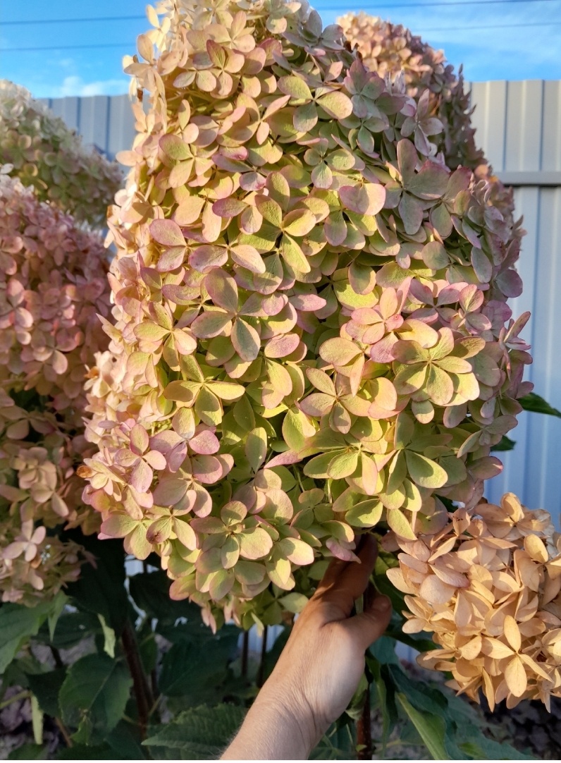 Фантом радует своим цветением, начиная с конца июня, когда соцветия постепенно увеличиваются в размере. Их первоначальный белоснежный оттенок к августу начинает переходить в нежные розово-персиковые тона с оранжевыми переливами. Благодаря своей стойкости к заболеваниям и щедрому цветению, этот сорт можно с уверенностью назвать одним из лучших среди гортензий.