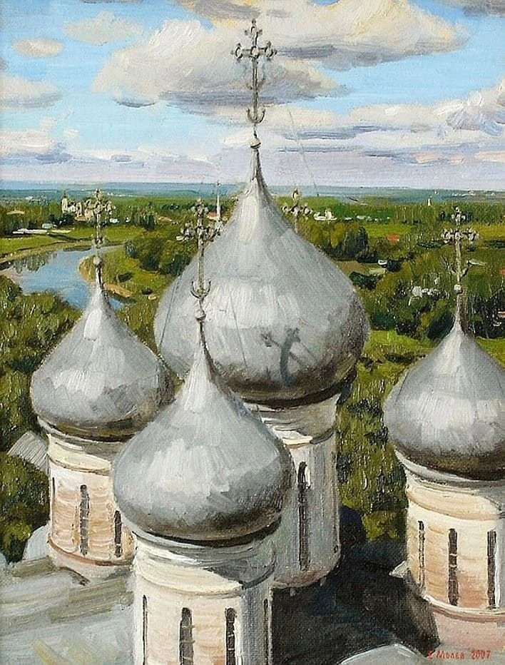 Это пейзажи северной природы, старинные архитектурные памятники Русского Севера. Евгений Молев — родственник Александра Борисова по материнской линии. Их объединяет любовь к Северу, его истории и духовному становлению.