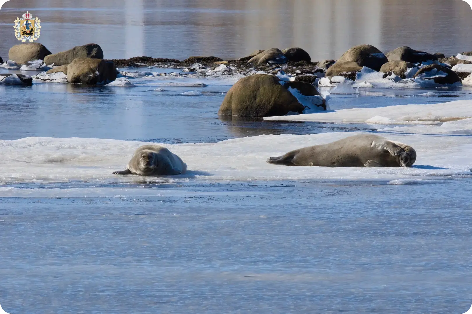 Это – морские зайцы. В конце апреля – начале мая они занимают свое излюбленное место для отдыха.