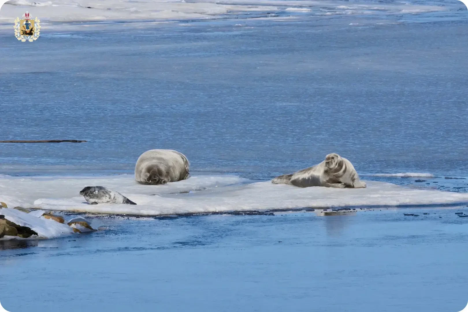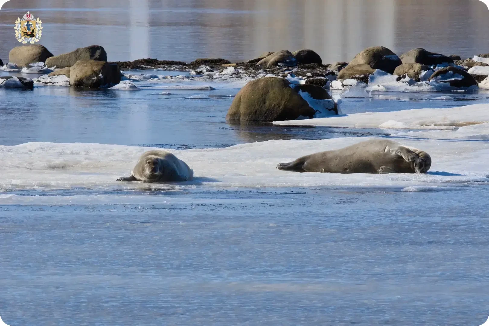 ТЮЛЕНИКИ!Всю последнюю неделю в Бухте благополучия, прямо перед Соловецким монастырём, на льдинах греются тюленики. И не простые, а морские зайцы.Почему «зайцы»? Есть две версии:— за пугливость;— за манеру передвигаться по суше прыжками...